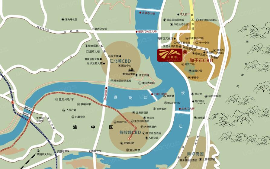 3.交通配套:紧邻南滨路,自驾可通过朝天门大桥到达观音桥、江北嘴,或者经过内环快速到达南坪商圈,轻轨环线弹子石站年底通车,大大改善周边公共交通。
